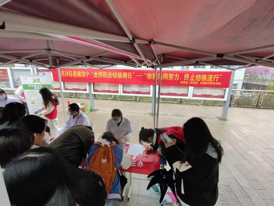 3月22日上午,总务处、学生处(团委)等部门联合肥西县人民医院共同组织开展了“世界防治结核病日”主题宣传活动。今年3月24日是第28个“世界防治结核病日”,宣传主题是“你我共同努力,终结结核流行”。