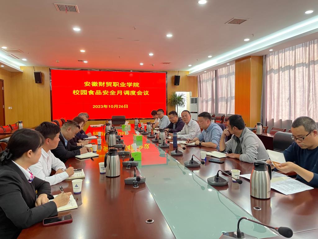 10月26日,学校召开食品安全月调度会议。学校党委副书记、副院长何翔出席会议。总务处蜀山校区管委会负责人、和平校区管委会负责人以及三个校区食品安全管理员和餐饮企业负责人参加会议。